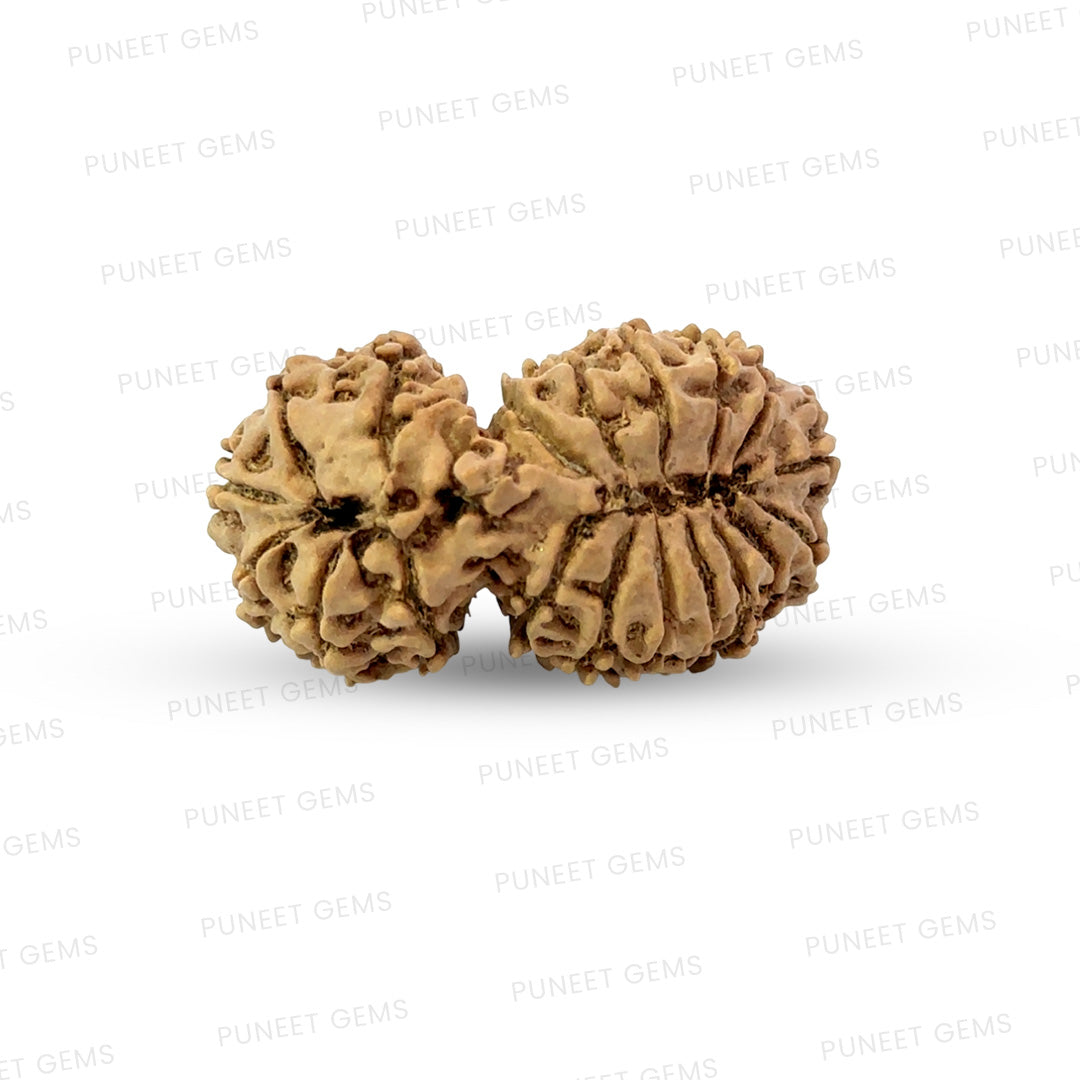 The 19 Mukhi Gauri Shankar Nepali Rudraksha is an exceptionally rare and sacred bead formed by the natural union of two Rudraksha beads. It combines the abundance-giving and fulfillment energy of the 19 Mukhi Rudraksha, blessed by Lord Narayana (Vishnu), with the divine harmony of Gauri Shankar Rudraksha, symbolizing the eternal union of Lord Shiva and Goddess Parvati.