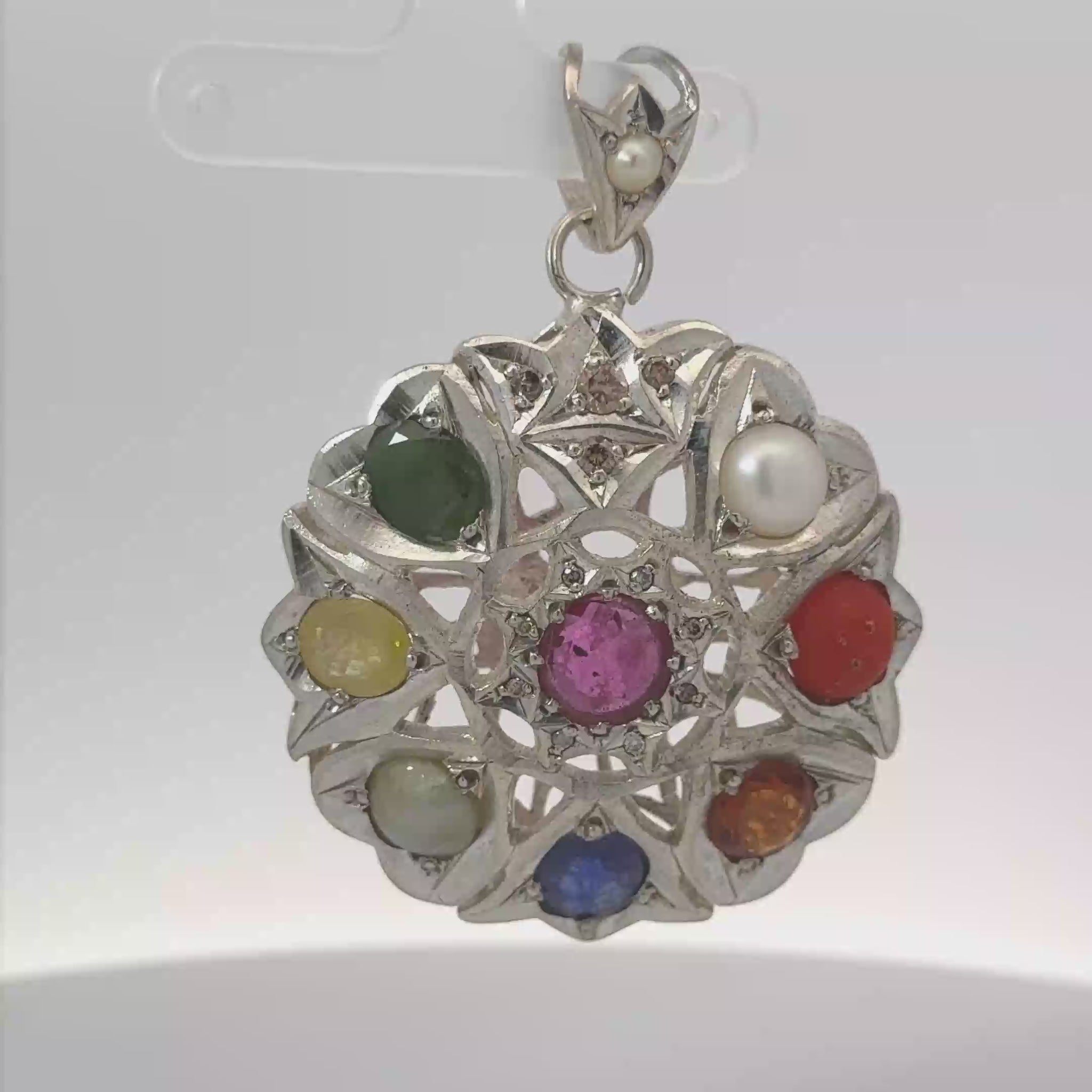 Natural Navratan Silver Pendant – Nine Gems, One Powerful Symbol