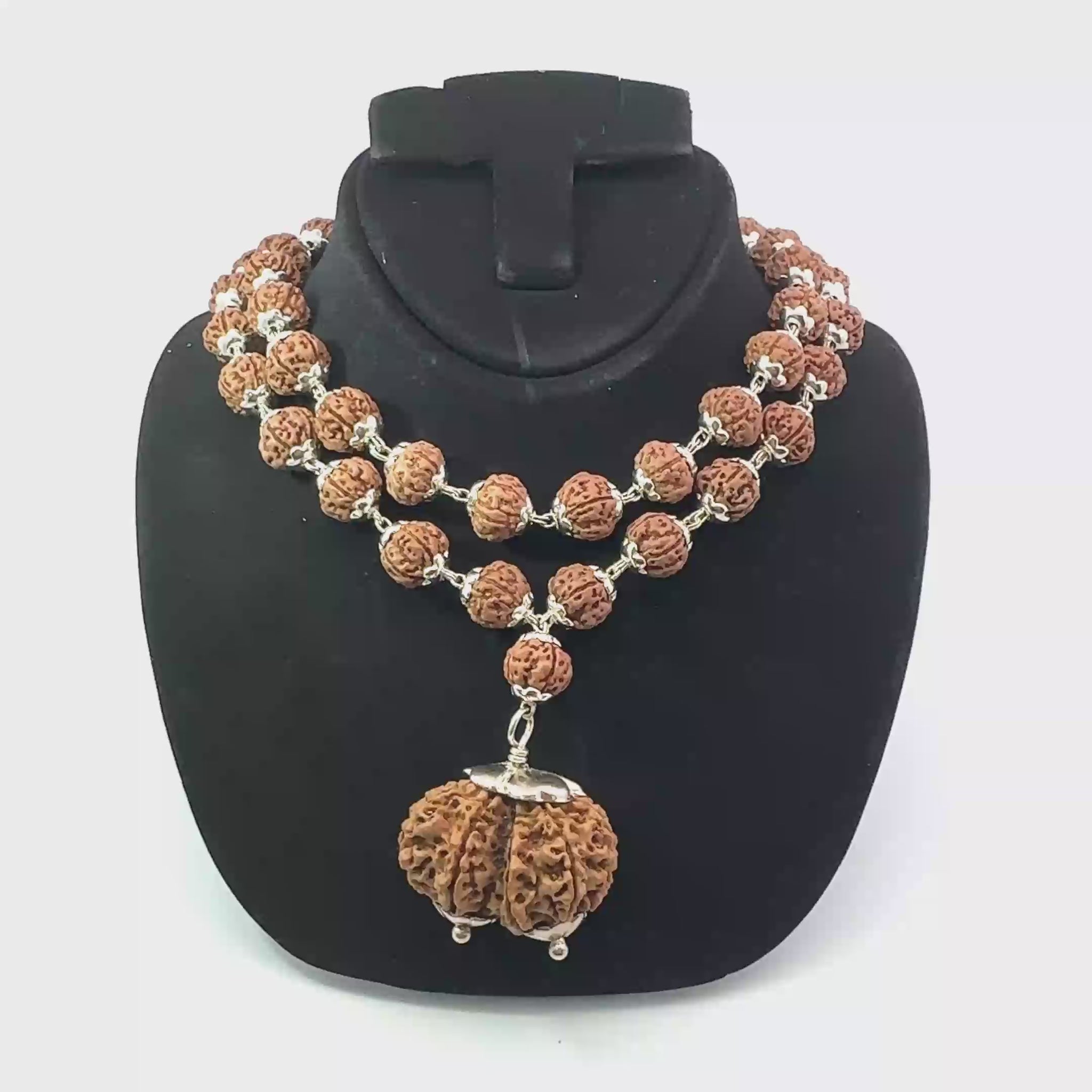 Each Rudraksha is carefully handpicked, blessed, and strung in a traditional mala of 54+1 or 108+1 beads (choose variant). The mala is handcrafted with silver capping for elegance and durability, suitable for daily wear or meditation.